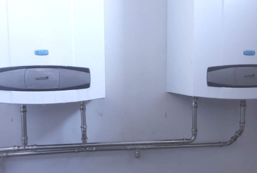 Горячая вода - смонтирован бойлер косвенного нагрева 200 литров с системой рециркуляции и полотенцесушителями